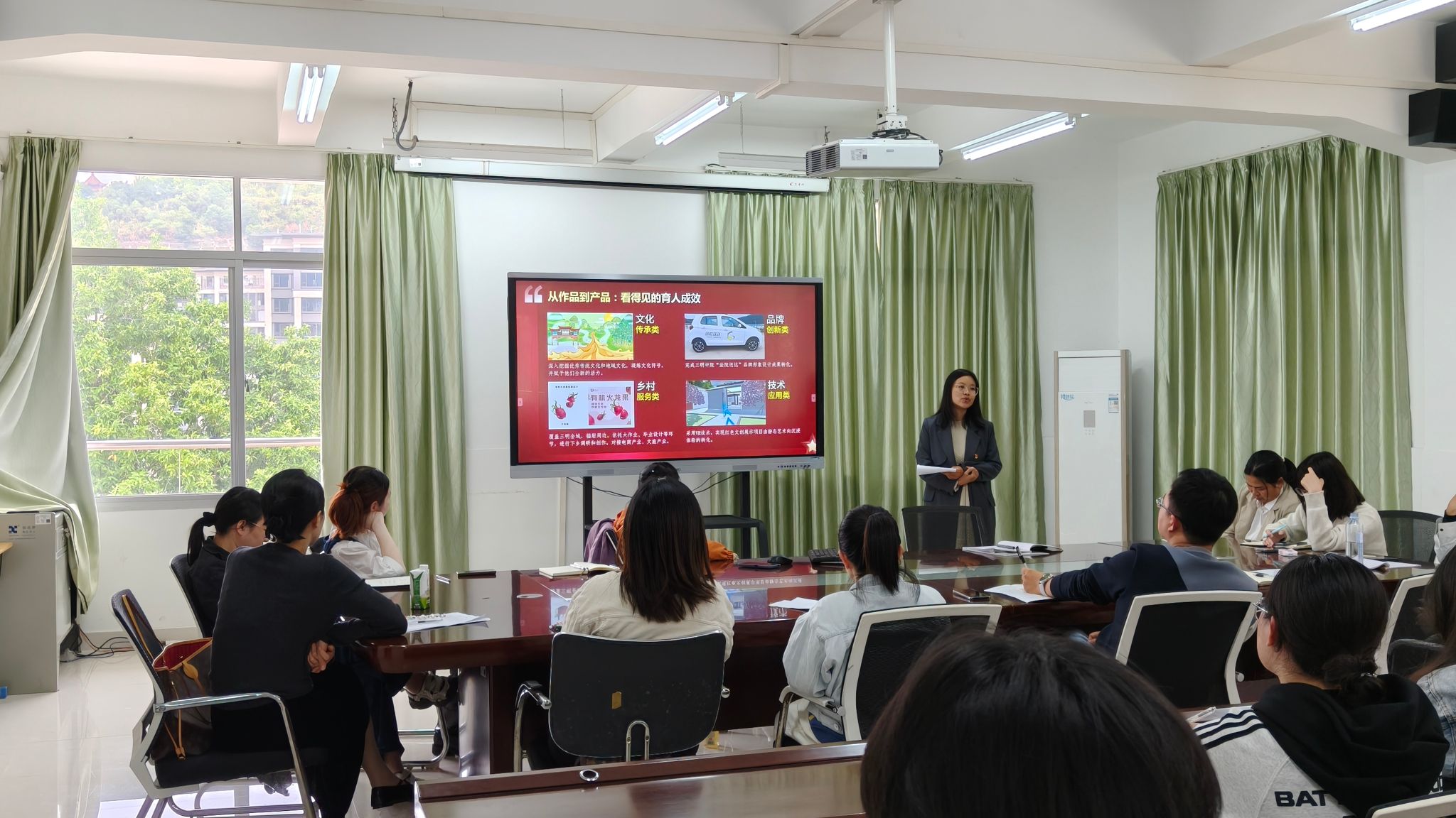 围绕“使命在肩”主题,党员教师强调艺术设计需践行“立德树人、守正创新、以美育人、服务社会”四大使命。师生团队设计的三明中院品牌形象、泰宁景区VI系统及VR红色文创项目,彰显了设计背后的文化传承与社会价值。