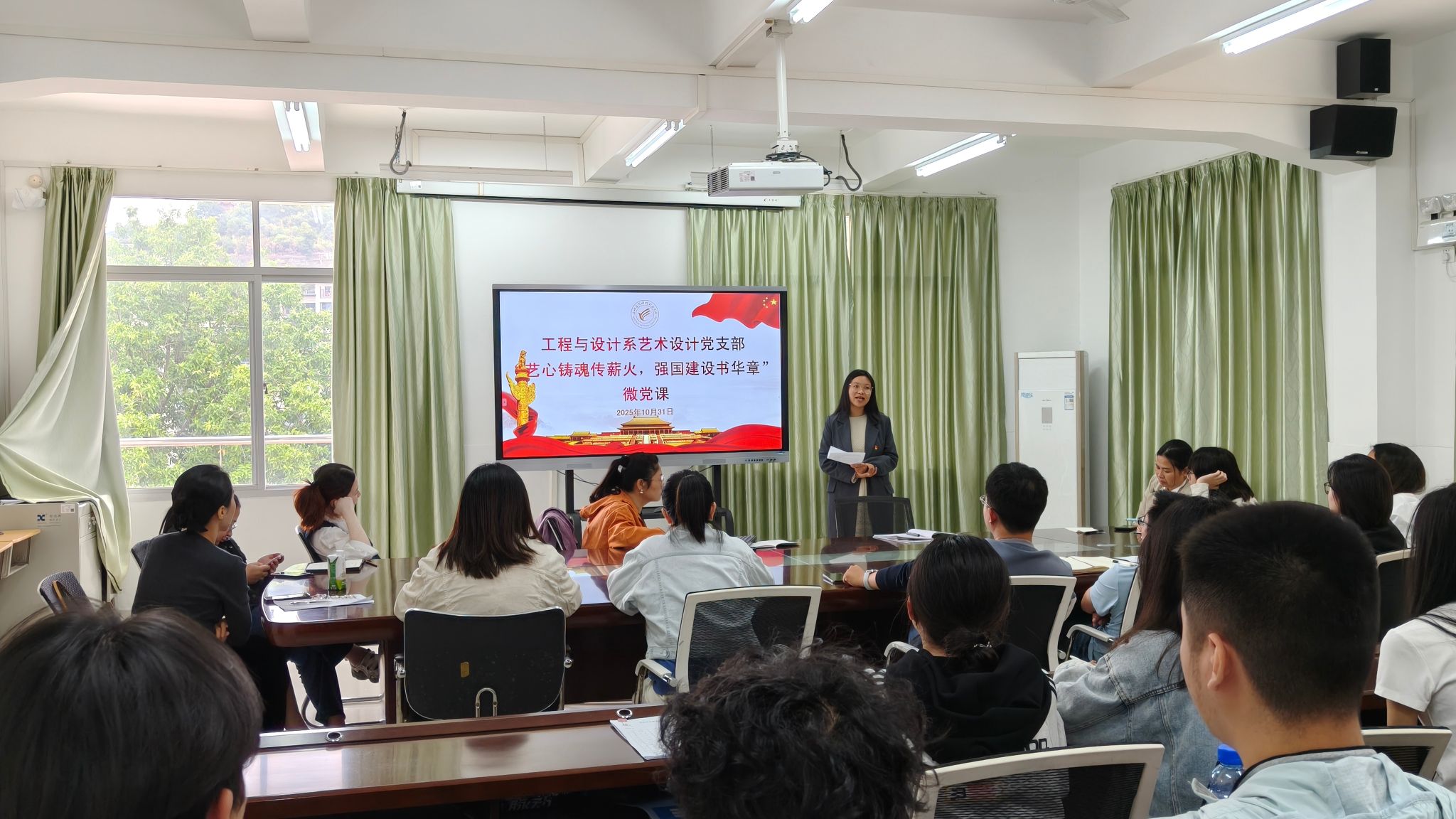 为深入学习贯彻党的教育方针,强化学生预备党员及积极分子的使命担当,激发青年学子投身强国建设的热情,2025年10月31日,艺术设计党支部以“艺心铸魂传薪火,强国建设书华章”为主题,开展了一场别开生面的微党课党日活动,引导青年学子 以艺术设计为纽带,在服务国家战略中践行初心使命。