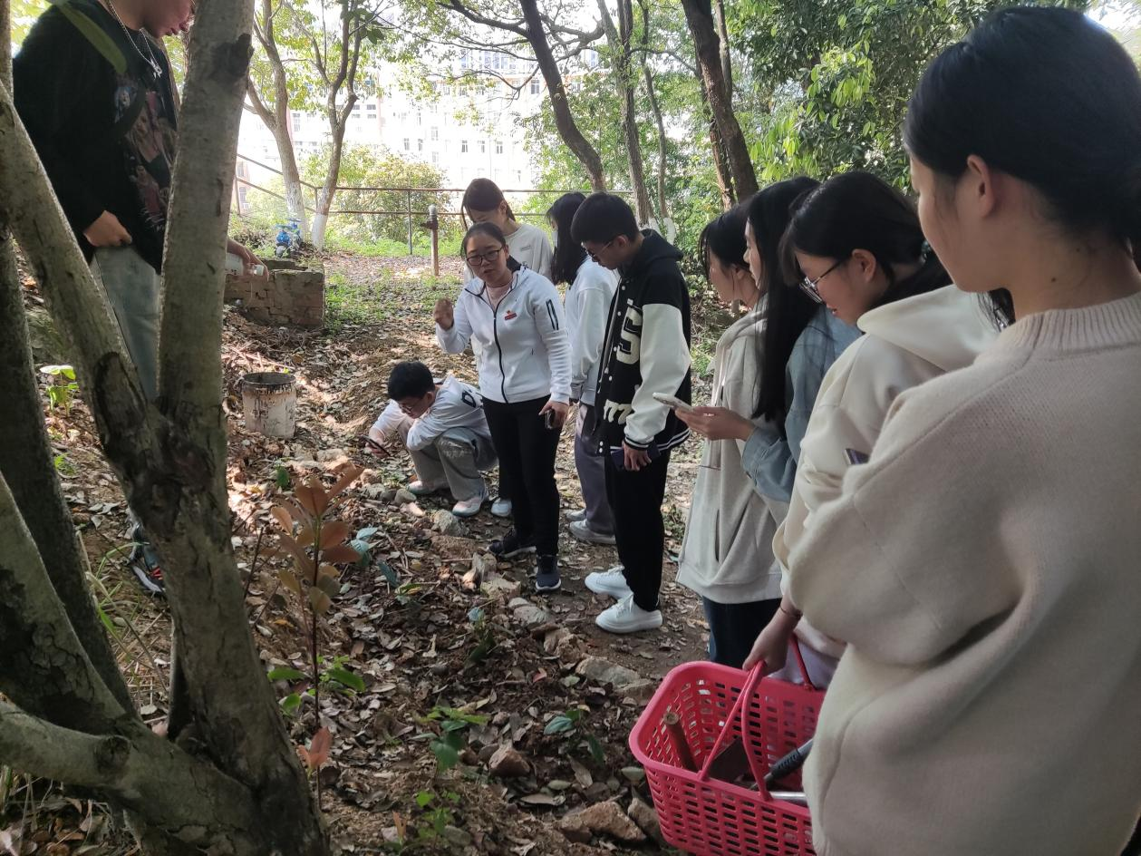 活动开始,医学实训中心党支部副书记黄水金同志给带领同学们在校舍周围寻找药用植物。此次活动充分调动了同学们的学习积极性,通过学习认识了车前草,鱼腥草,金银花,艾叶,马兰,凤尾蕨,接骨草,骨碎补,紫花地丁,半夏,桑叶,薄荷,枸杞,枇杷叶等药用植物,同学们积极踊跃发言交流民间用药经验。党支部的张建霞、余邵辉、吴敏婕等同志和同学们一起探究和识别中草药,同学们通过摸一摸、看一看、查一查、聊一聊的方式从中草药的形状、颜色、气味、民间用药等方面认识和识别中药。