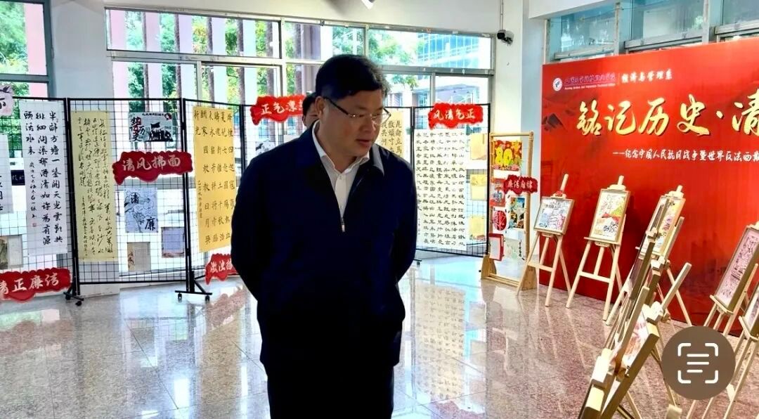 为纪念抗战胜利八十周年,深化大学生廉洁教育,11月10日至17日,经济与管理系在北校区杨时楼一楼大厅举办“铭记历史·清风正气”纪念抗战胜利八十周年暨大学生廉洁教育书画展。党委书记张松富、院长向红亮等院领导受邀前往观展,与师生共同感受翰墨间的家国情怀与清风正气。