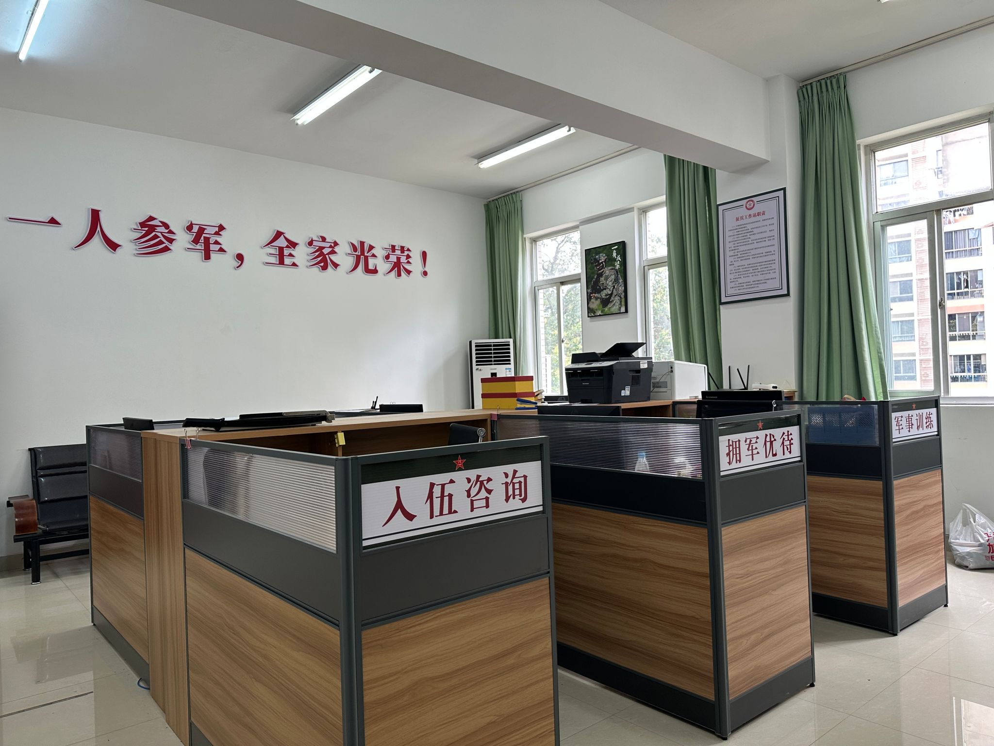 其中,征兵工作办公室将 征兵工作制度张贴上墙,配备了电脑、传真电话、打印机等设备,并安排了专职征兵工作人员。该办公室负责组织征兵宣传动员、体检政治考核等工作,研究落实征兵优待政策,同时做好退伍复学大学生的复学工作。资料室将保密、资料管理制度张贴上墙,配备了一体彩色打印机和资料柜,对各类征兵工作台账资料进行规范整理。会议室将会议保密制度、廉洁征兵“十不准”张贴上墙,营造出会议室作为强军主阵地的氛围,用于组织召开征兵工作专项会议。征兵服务大厅营造出浓厚的强军氛围,开展征兵宣传动员工作,为有意向入伍的学生提供指导服务。