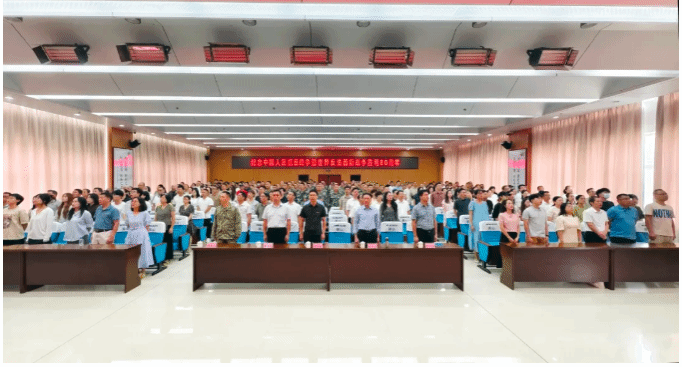 上午9时纪念大会开始,全体与会人员肃立高唱国歌。观看过程中,全体人员神情专注,认真聆听习近平总书记重要讲话,共同回顾中国人民抗日战争暨世界反法西斯战争的光辉历史,深刻缅怀为抗战胜利英勇牺牲的先烈们。当屏幕上出现受阅部队英姿飒爽、整齐划一地通过天安门广场的震撼画面时,在场人员无不心潮澎湃,深受鼓舞。一件件国产新型武器装备、一个个铿锵有力的步伐、一面面荣誉的旗帜,充分展示了国家强大的国防力量和现代化建设的辉煌成就,也彰显了中华民族的蓬勃生机与坚定自信。