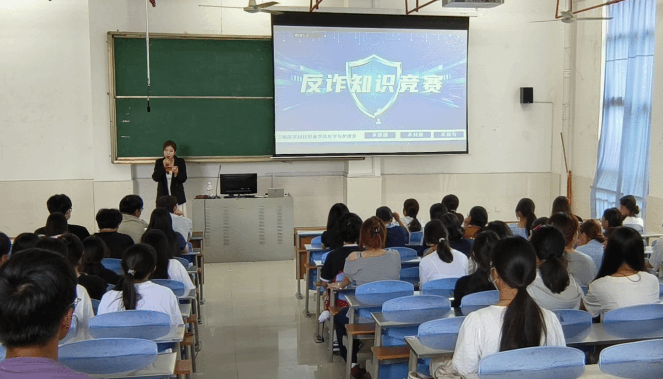 为切实增强大学生对各类诈骗手段的辨识能力,筑牢校园安全防护屏障,9月26日,医学与护理系团委在朱子楼阶梯教室五举办“反诈同行,共筑安全” 反诈知识竞赛活动。