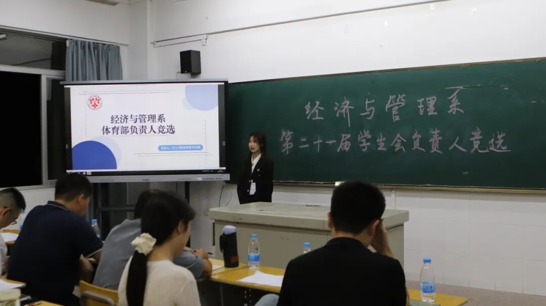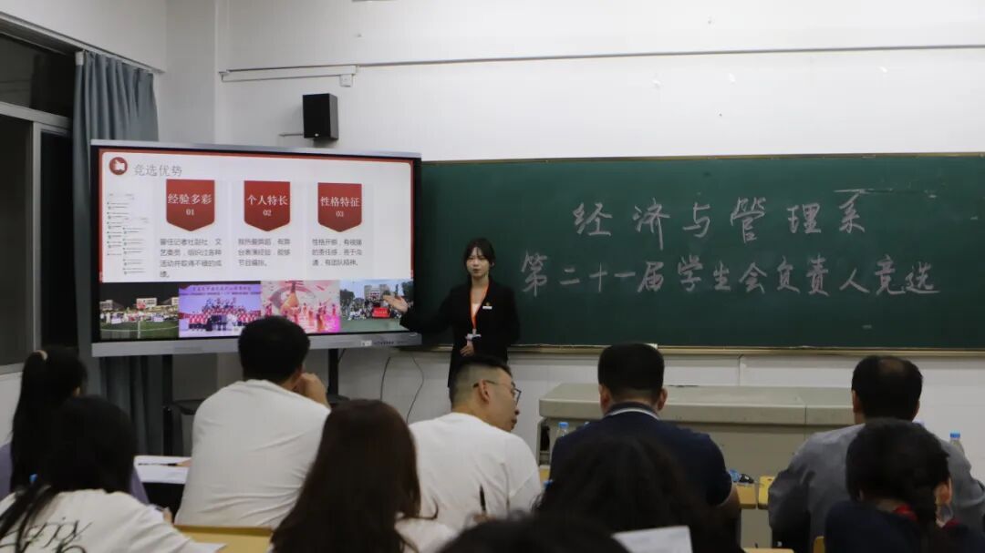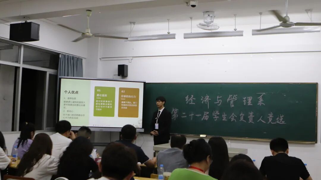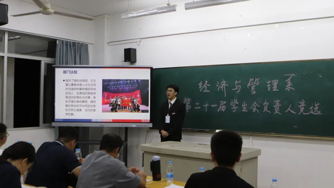 为选拔新一届学生会干部队伍的核心力量,确保组织的活力,持续为全系师生提供服务,推动我系学生工作蓬勃发展,10月15日晚,经济与管理系于杨时楼202教室开展了第二十一届学生会换届竞选活动。经济与管理系党总支副书记蔡先、团委书记巫超以及全体辅导员出席了此次活动,与各部门代表一同见证了新一届学生会骨干的诞生。