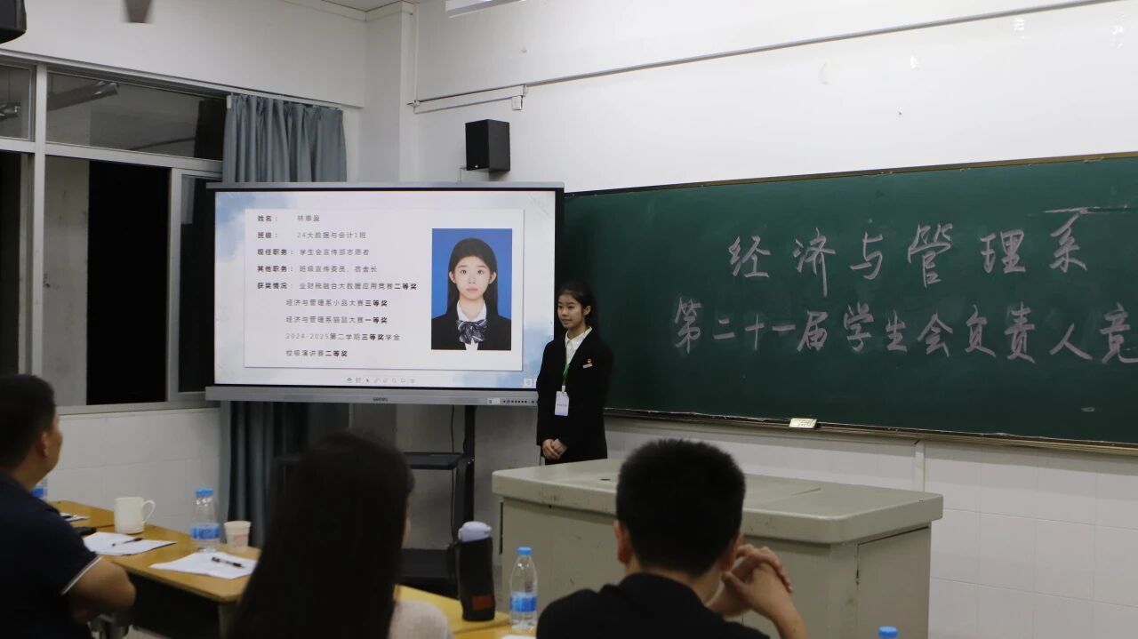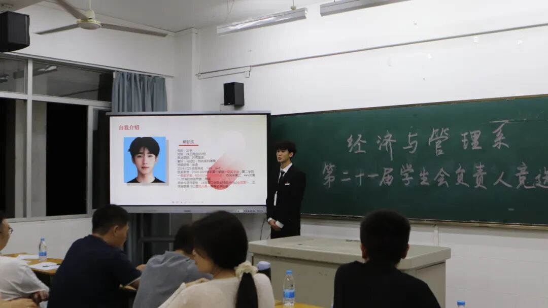 竞选现场氛围庄重且热烈。参与竞选的同学们神采奕奕,依次登台发表演讲。他们紧扣个人简介、对部门工作的理解以及自身竞选优势等方面展开详尽阐述,充分表达出服务同学、锻炼自我的强烈意愿与坚定决心。候选人言辞流畅、逻辑缜密,充分展现了经济与管理系学子良好的综合素质与蓬勃风貌,彰显出勇于担当的坚毅决心。