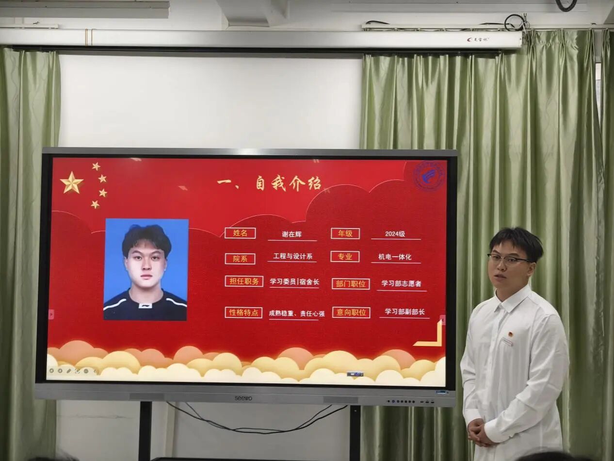 为优化学生组织结构,选拔有能力、敢担当的新骨干,为工程与设计系学生会注入新鲜力量,进一步提升服务同学、助力校园建设的能力,凝聚更多青年力量,工程与设计系于10月26日在黄慎楼208举办了第七届学生会换届竞选活动。