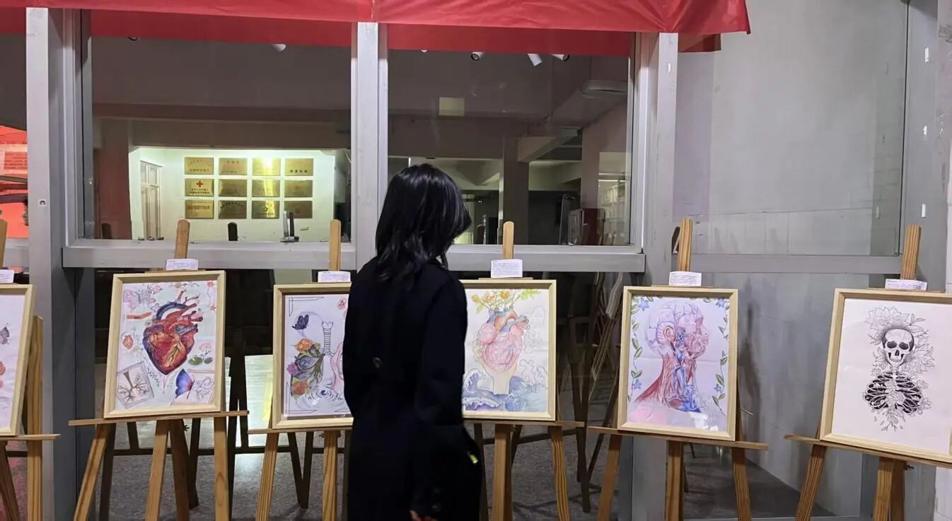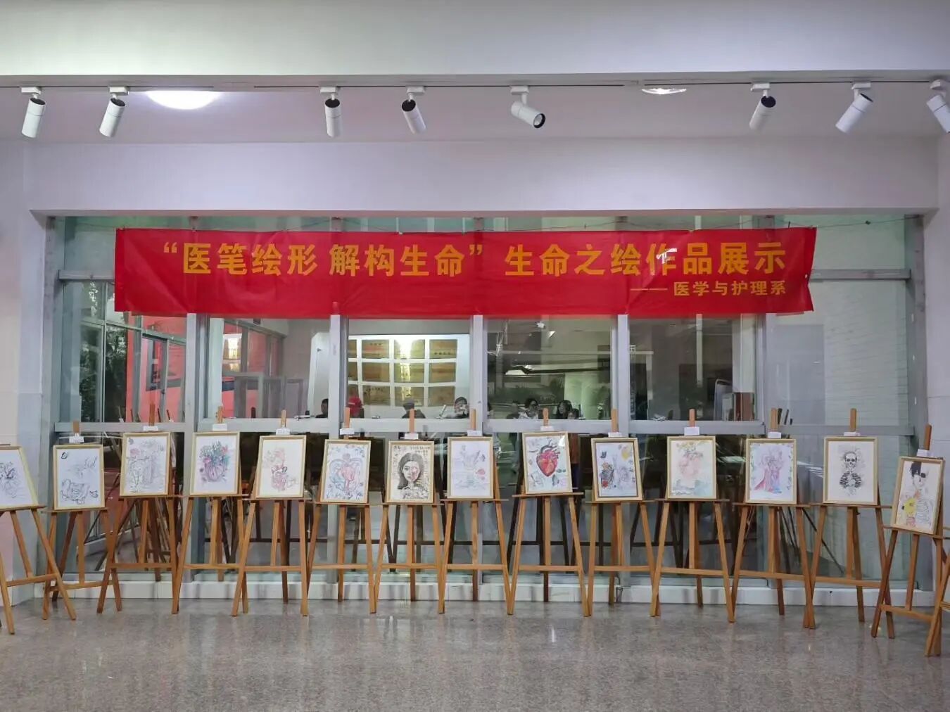为将抽象医学知识转化为具象表达,强化学生专业认知,同时激发创新与审美能力,搭建学生交流展示平台,医学与护理系团委于10月12日至11月7日开展以“医笔绘形,解构生命”为主题的生命之绘活动,活动作品展出于杨时楼一楼大厅。