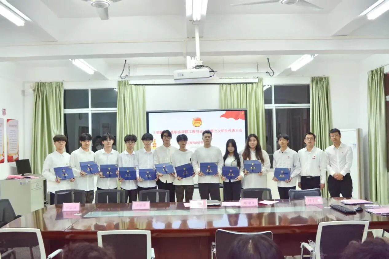 系党总支副书记方来煅为第六届学生委员会成员颁发聘书。最后,三明医学科技职业学院工程与设计系第七次学生代表大会在全体与会成员洪亮的团歌歌声中落下帷幕。