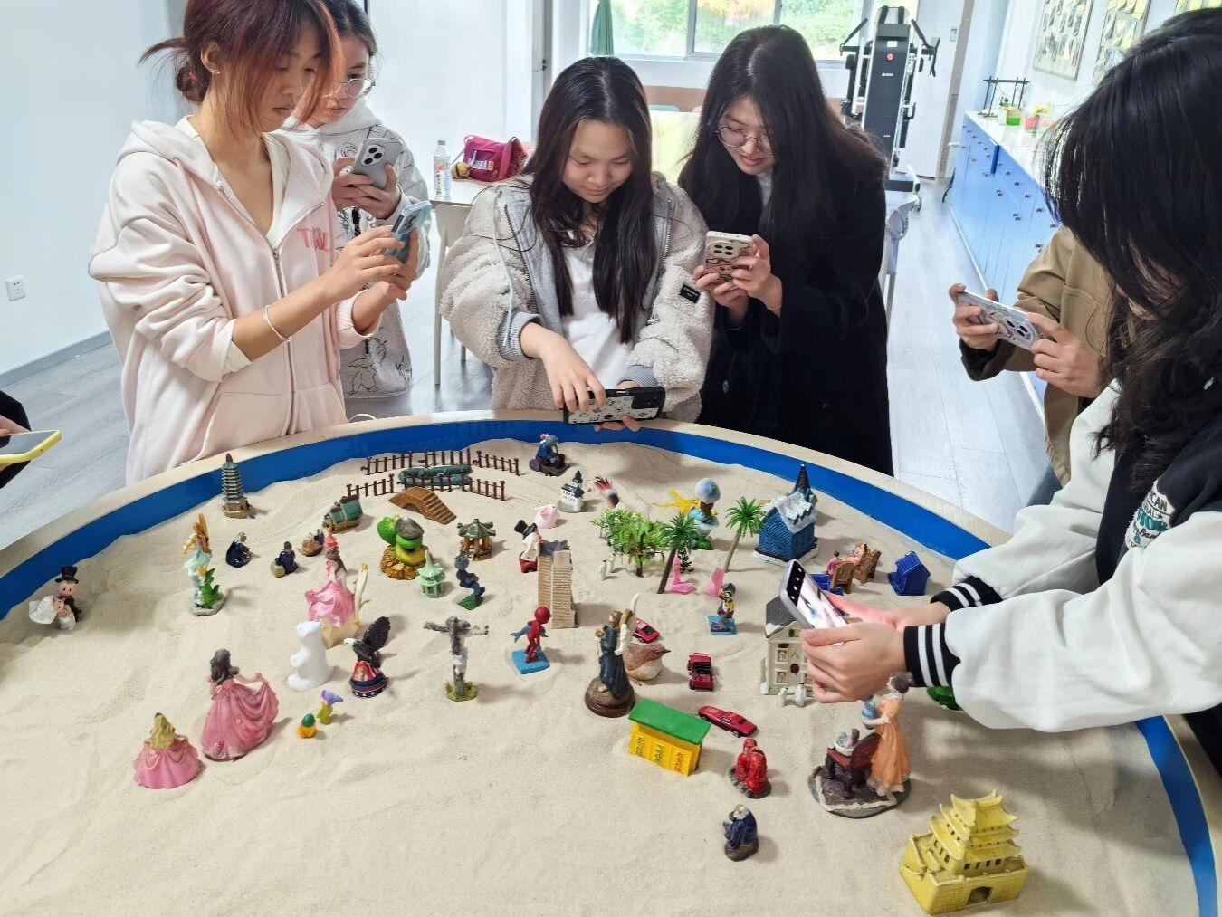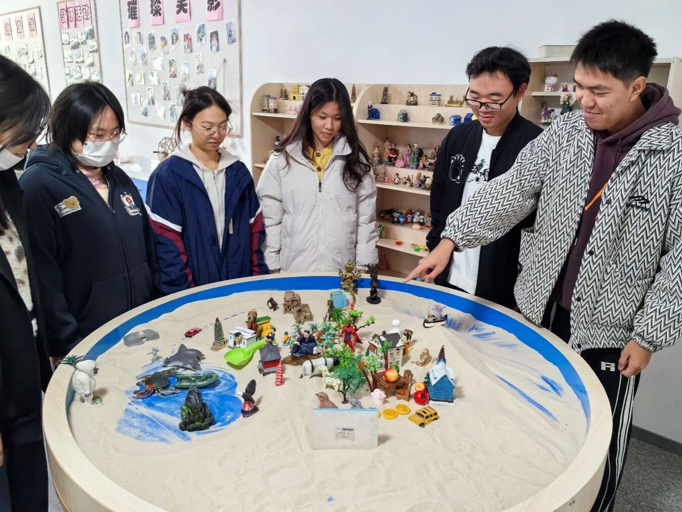 本次系列团辅活动以“箱庭疗法”为核心载体,特邀专业教师担任指导,分阶段开展10场团体辅导,每场聚焦10名学生,确保辅导效果精准触达。活动中,指导教师首先向学生讲解箱庭疗法的原理与操作规则,引导学生通过挑选沙具、摆放沙盘的方式,将内心潜意识的情绪与想法转化为可视化的“心理沙盘”。在团体互动环节,同学们围绕箱庭作品分享创作思路与内心感受,教师则结合专业知识进行温和解读,帮助学生觉察自我状态、理解他人视角,在交流中化解焦虑、建立信任。参与活动的学生表示,箱庭疗法打破了传统心理辅导的语言壁垒,让难以言说的压力有了“出口”,尤其是在团体分享中,看到同伴相似的情绪共鸣,更感受到被理解与支持的温暖。