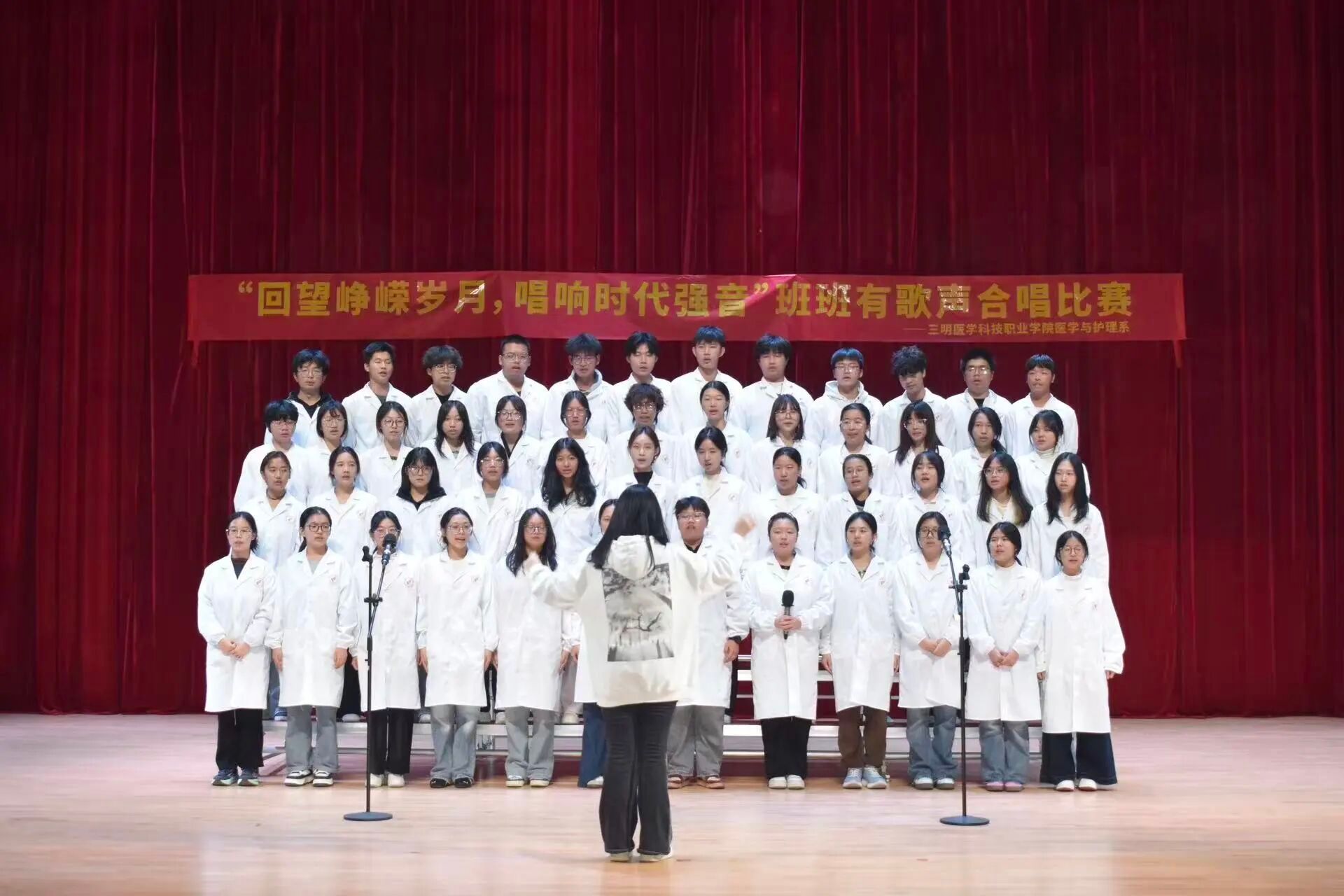 为了纪念抗战胜利80周年暨“12·9”爱国运动90周年,进一步增强学生们振兴中华的责任感和集体荣誉感,医学与护理系团委于12月1日晚在秉绶楼音乐厅开展“回望峥嵘岁月,唱响时代强音”班班有歌声合唱比赛。