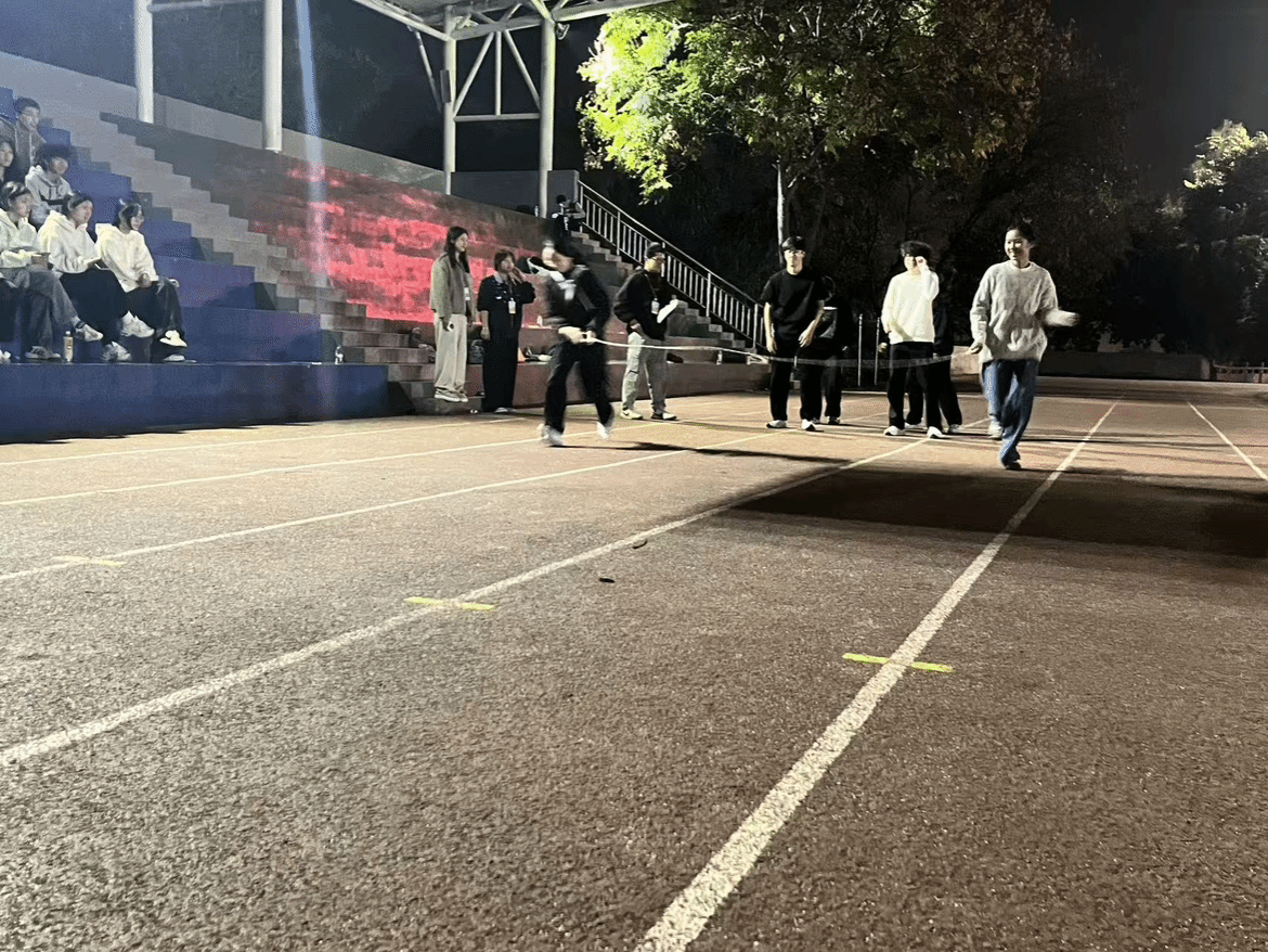 紧接着,“极速跨绳”挑战将活动推向高潮。这不仅是一场速度的比拼,更是对团队节奏与协作能力的考验。队员们手牵手、步调一致,在一次次的尝试与突破中,深刻体会到“同心协力”的力量,青春的激情在操场上尽情飞扬。
