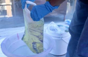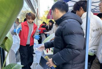 活动中,参与者领取帆布袋、扇子、雨伞等物料,在工作人员的专业指导下,沉浸式体验构思、折叠、染色的完整流程。大家发挥创意,搭配缤纷色彩,制作出各具特色的扎染作品,既释放了日常压力,又通过色彩与图案表达了内心情绪。此外,分享活动海报集赞的师生还收获了耳罩、手套等冬日暖心礼品,现场氛围温馨融洽。部分参与者选择将作品留在现场展示,为校园增添了一抹灵动色彩。