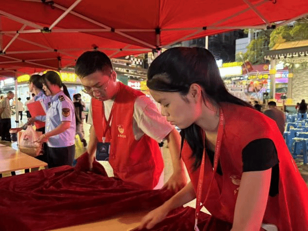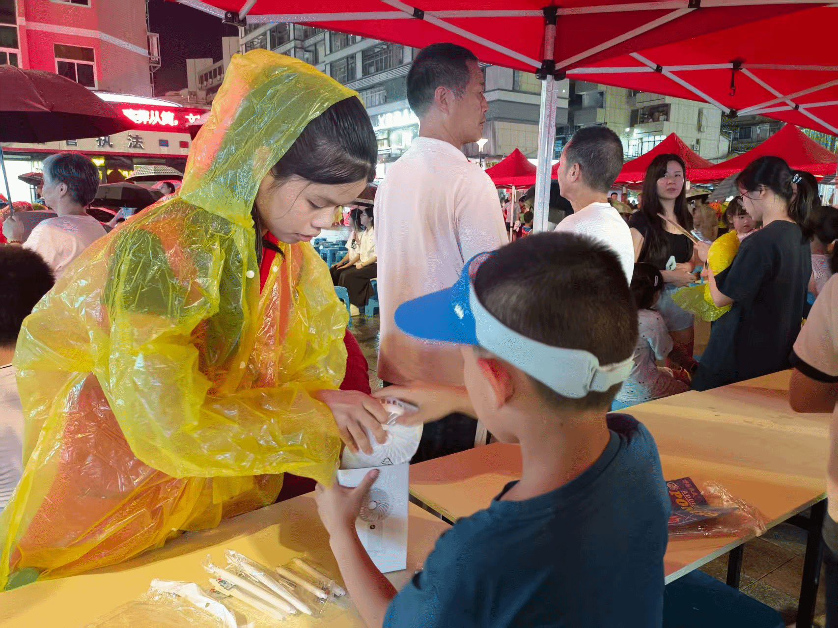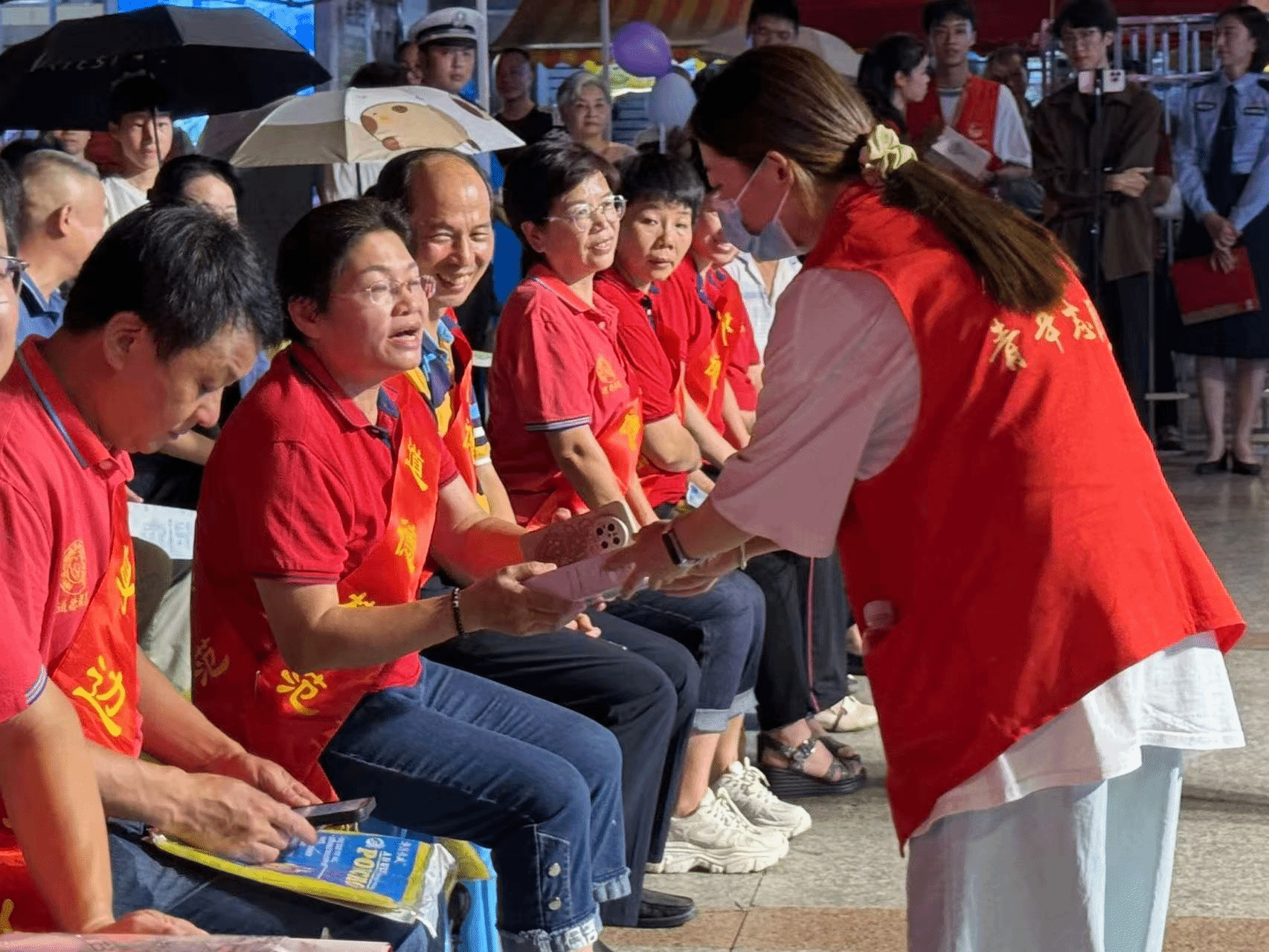面对可能的天气变化,志愿者们提前备好雨衣,及时发放到参会人员手中。在文明集市与互动环节,他们又耐心引导市民参与,细致分发奖品。