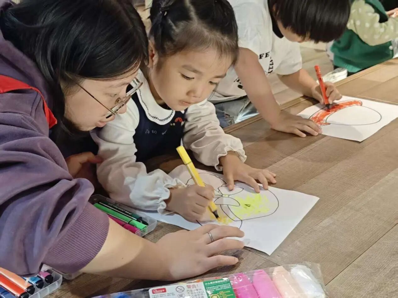正值重阳节,志愿者精选绘本《玉兰奶奶的草帽》,通过主题绘本导读,用温暖的故事引导小朋友理解“陪伴”的意义,懂得关爱身边的老人,珍视亲情。随后的才艺展示环节,孩子们用朗诵、歌曲传递对长辈的祝福,又制作了“感恩贺卡”,把对老人的心意融入手作之中。
