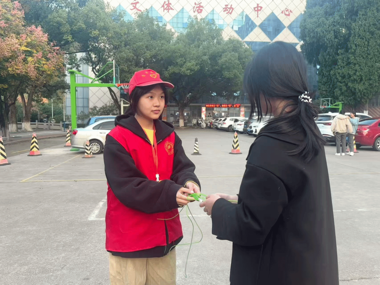 跳绳比赛区域,志愿者提前整理器材,协助裁判精准计时计分,以贴心服务让选手们专注参赛。
