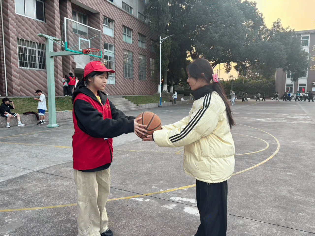 比赛期间,各赛区志愿者履职尽责。篮球趣味赛区域,志愿者细致检查篮球、篮筐等器材安全,清晰讲解活动规则,全程为选手提供赛事服务并及时解决突发问题。