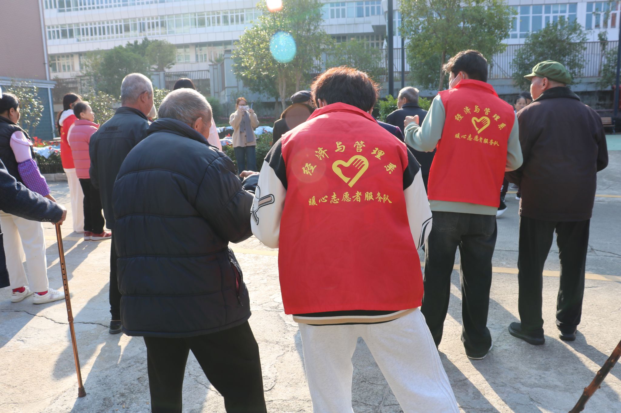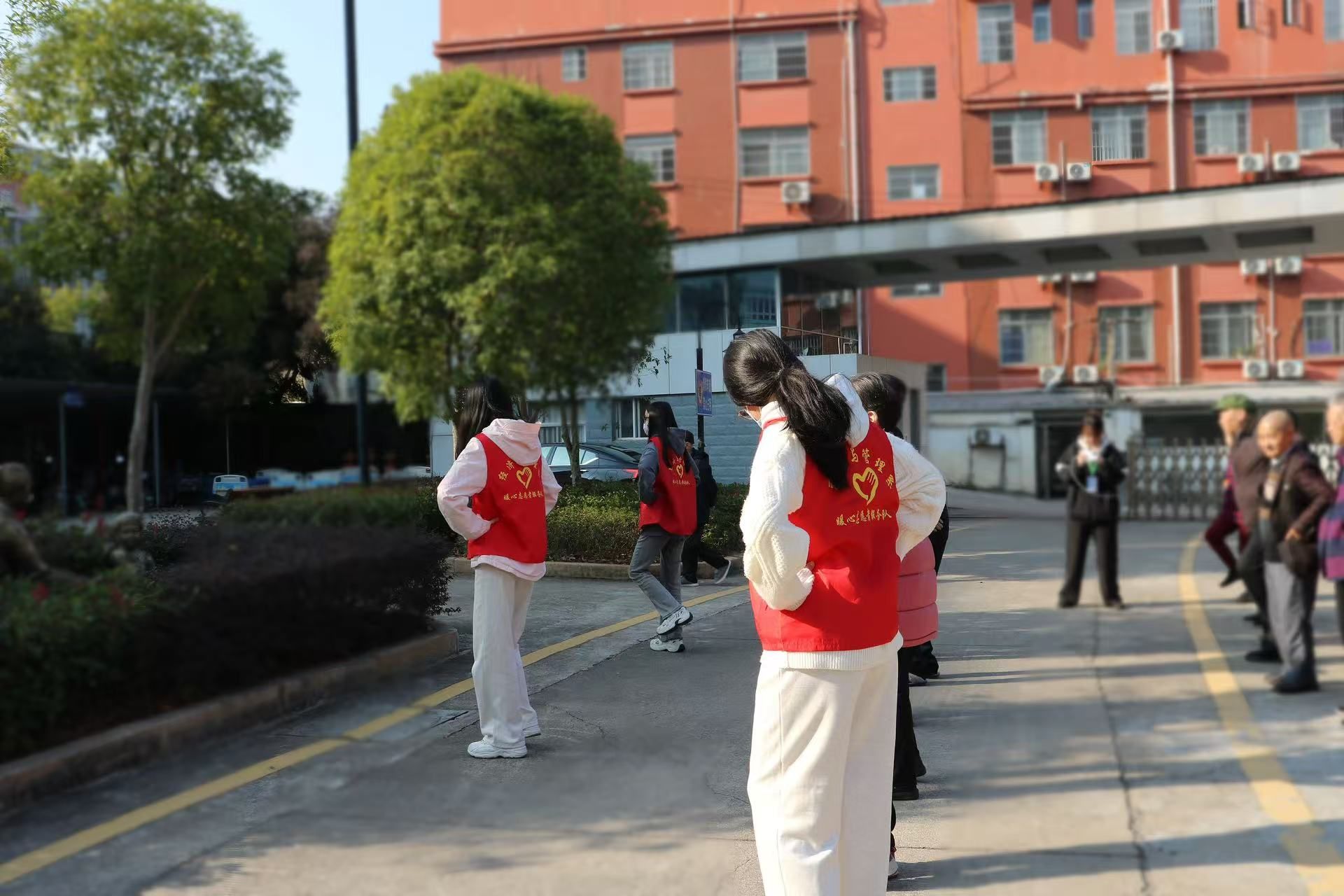 手势舞教学结束后,志愿者们拿出提前准备的象棋、跳棋,与老人们组队对弈,还有的志愿者陪着老人聊家常,听他们年轻时的故事,或者带着老人在庭院散步,晒着暖阳唠着嗑,温馨的氛围感染着在场的每一个人。