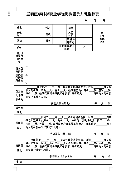 三明医学科技职业学院优秀团员入党推荐表.wps