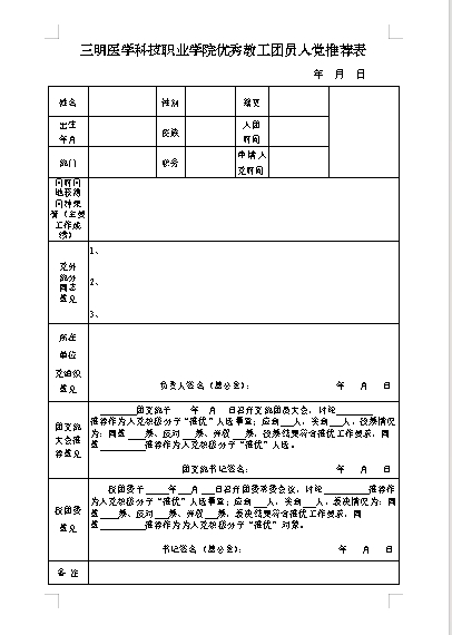 三明医学科技职业学院优秀教工团员入党推荐表.wps