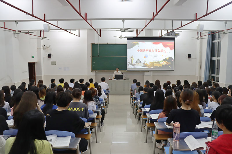 3月31日晚,朱熹楼阶5大教室内座无虚席,时而掌声阵阵,时而笑语频频,原来这是院党委王怀毅书记以《中国共产党为什么能?》为题,用亲切质朴的语言和鲜活生动的故事给19级护理4、5、6三个班的155位同学上了一堂生动的思政大课。 今年是中国共产党建党百年,为了引导同学们充分认识中国共产党为什么“能”、马克思主义为什么“行”、中国特色社会主义为什么“好”,王书记做足功课,他以“中国共产党为什么能?一是历史的选择!二是人民的选择!三是中国共产党人的自我选择!”作为主线脉络,带领学生们重温了硝烟岁月的近代中国,党的前辈信仰坚定、百折不挠、成为坚强的堡垒,将马克思主义理论的旗帜漫卷西风高高飘扬。 课上,王书记以丰富的事例引导同学们深入思考,通过纵横对比将“落后就要挨打”和“为有牺牲多壮志,敢叫日月换新天”的历经磨难、百折不挠讲述得鞭辟入里。在南陈北相约建党的誓言里,在《十送红军》的歌声里,在刘伯承与小叶丹彝海结盟的动人情谊里,同学们学到了“江山是人民,人民就是江山,得民心者得天下”的不变真理,也在李自成、国民党和苏联解体的教训中明白了唯有中国共产党,始终高举马克思主义旗帜,始终坚持人民利益为上,把人民拥护不拥护、赞成不赞成、高兴不高兴、答应不答应作为衡量一切工作得失的根本标准,具有彻底的自我革命精神。 课程的最后王书记寄语同学能有所感悟、有所收获,力求学史明理、学史增信、学史崇德、学史力行,做到学党史、悟思想、办实事、开新局,以昂扬的姿态,开启新征程,奋进新时代,以优异成绩迎接建党一百周年。 党委书记带头上思政课,是我院深入贯彻落实全国高校思想政治工作会议和中央文件精神,营造良好氛围,推进立德树人的重要举措之一。