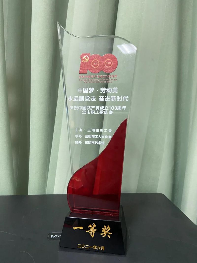 激昂的歌曲,熟悉的旋律。颂唱难忘的岁月,演绎时代的华章。6月30日下午,我院教工合唱团参加由三明市总工会举办,三明市工人文化宫承办的“中国梦·劳动美—永远跟党走奋进新时代”庆祝建党100周年全市职工歌咏赛(决赛)。经过初赛的选拔与决赛激烈的角逐,我院教工合唱团以9.84分的高分荣获本次大赛一等奖以及优秀组织奖。